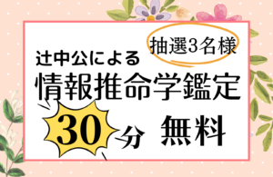 辻󠄀中公による情報推命学鑑定30分(通常11000円相当)を抽選で3名様にプレゼント!
