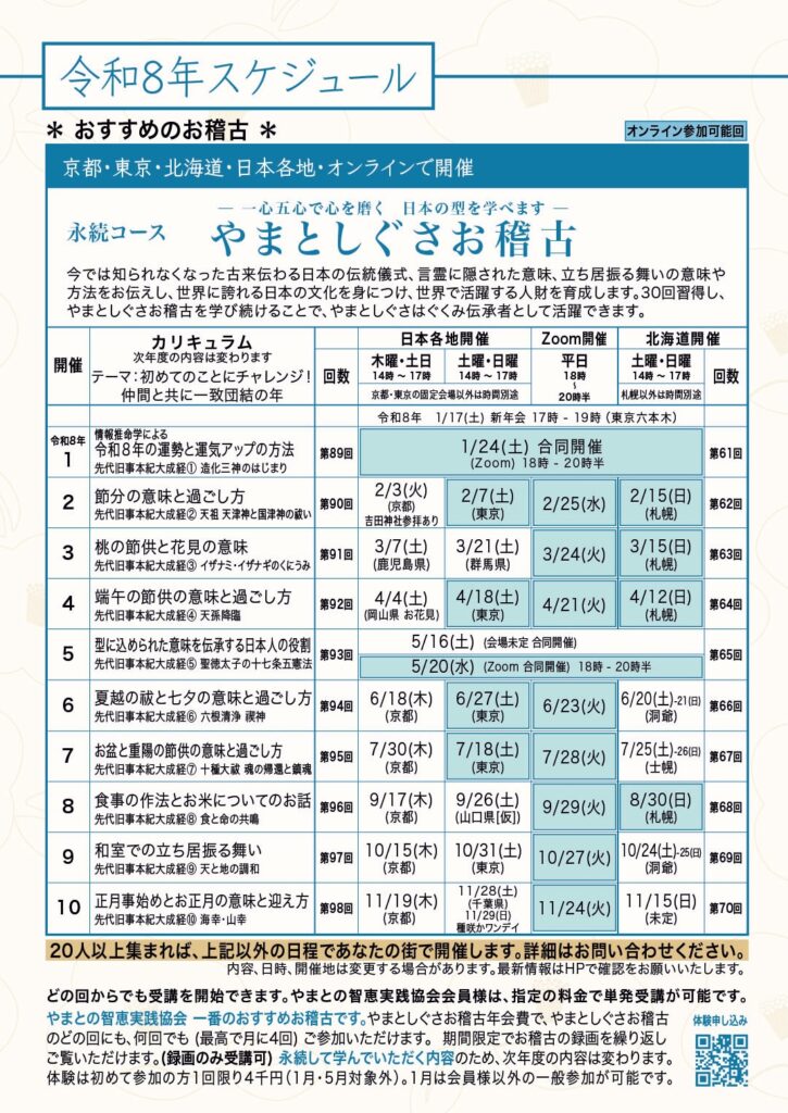 令和8年度やまとしぐさ講座カリキュラム発表!