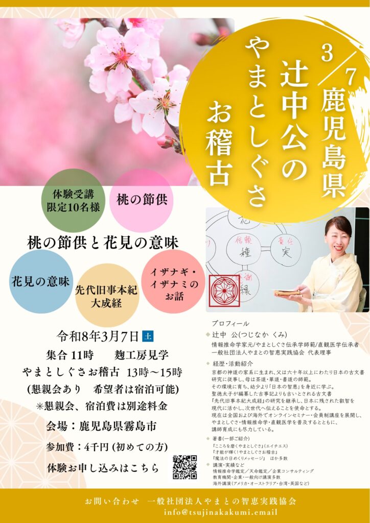 令和8年3月7日(土)の「やまとしぐさお稽古」は鹿児島県で開催いたします