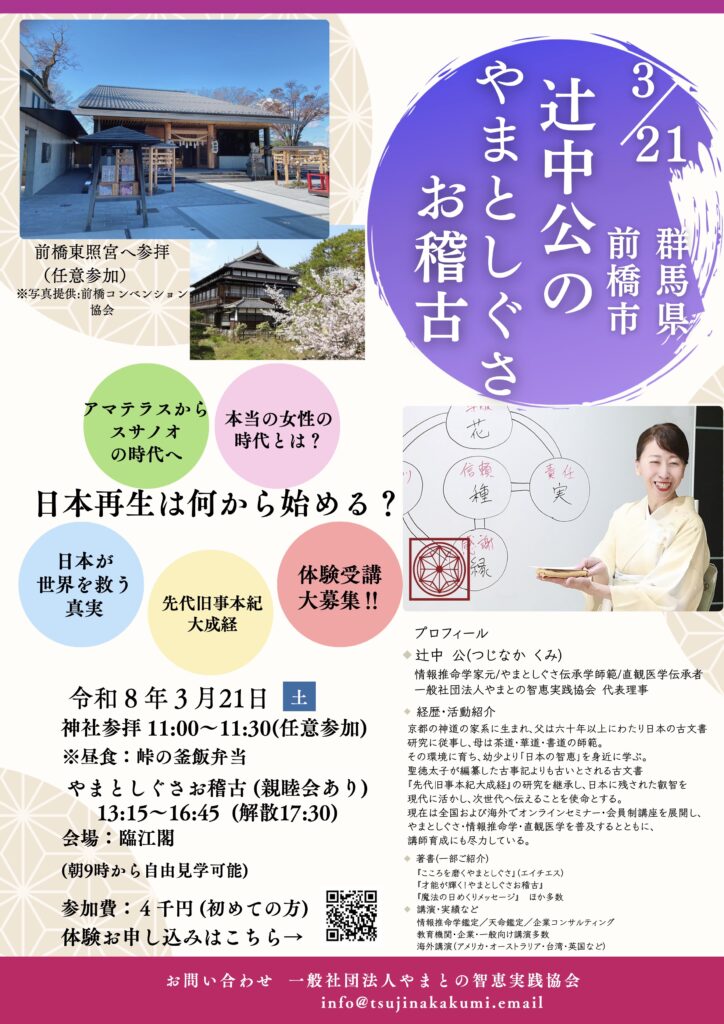 令和8年3月21日(土)の「やまとしぐさお稽古」は群馬県で開催いたします